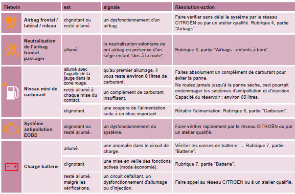 À chaque démarrage : une série de témoins s'allume appliquant u n auto-test de contrôle. Ils s'éteignent dans l'instant.