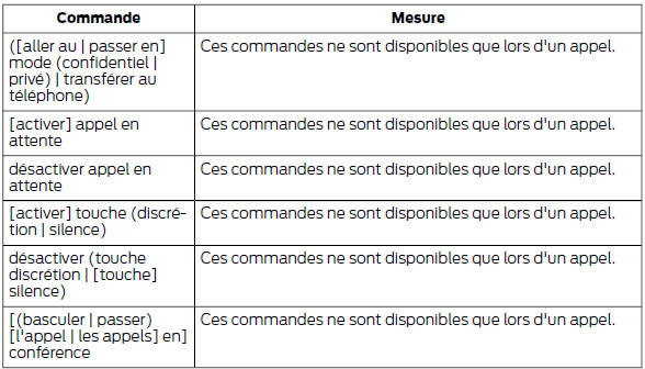 L'appel mains-libres constitue l'une des fonctions principales de sync. Même si le système prend en charge une large gamme de fonctions, beaucoup d'entre elles dépendent de la fonctionnalité de votre téléphone cellulaire.
